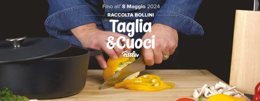 Taglia & Cuoci è la nuova raccolta bollini che ti permette di collezionare un set completo di accessori Fissler per la cucina: i coltelli realizzati in acciaio inossidabile riciclato (>98% acciaio inossidabile riciclato pre-consumo), perfetti per tutte le preparazioni, sia semplici che elaborate. A completamento della linea troverai l’elegante casseruola Fissler in ghisa e il ceppo universale in legno FSC.